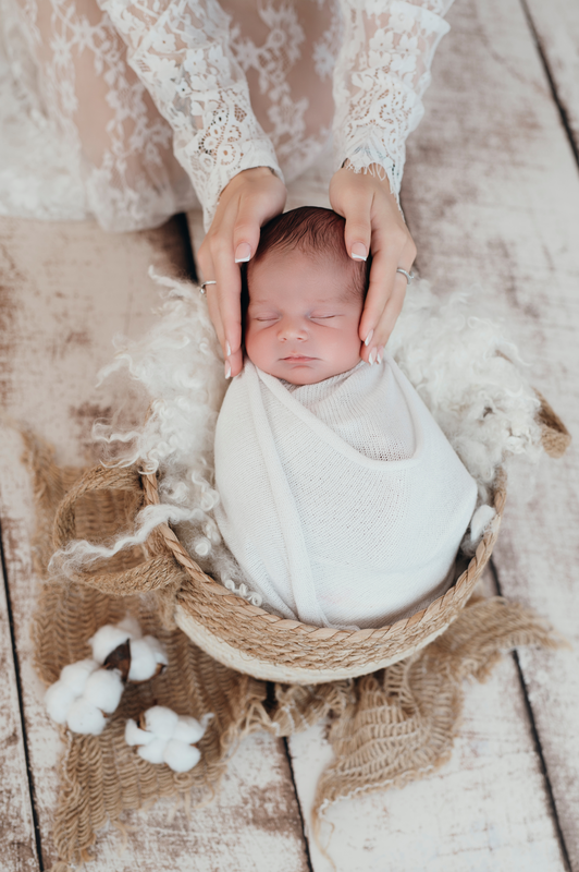 La séance photo nouveau-né se déroule dans mon studio à Vigneux-sur-Seine, dans une ambiance chaleureuse, douce et paisible.